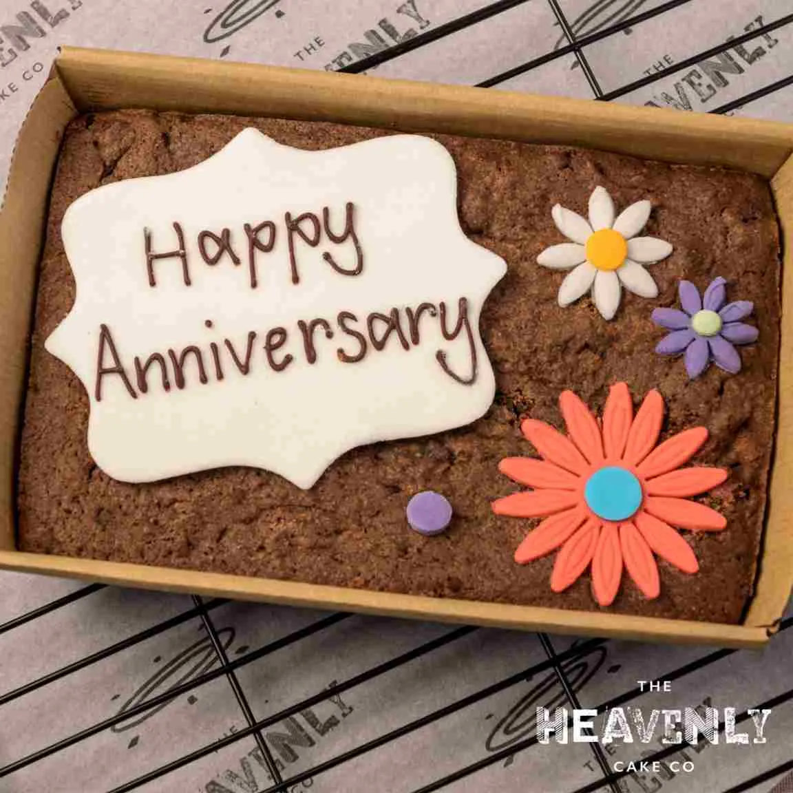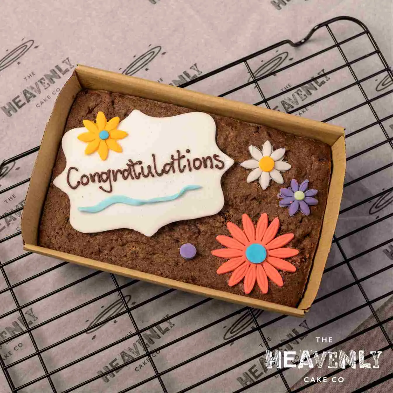 A large chunky brownie chunk – it’s a perfect gift for a birthday or any celebration and it comes with a personalised piped message and decorations. The brownie measures approx 17 x 11cm. Basically it’s like an edible greeting card! Serves 4-6 if it must be shared.