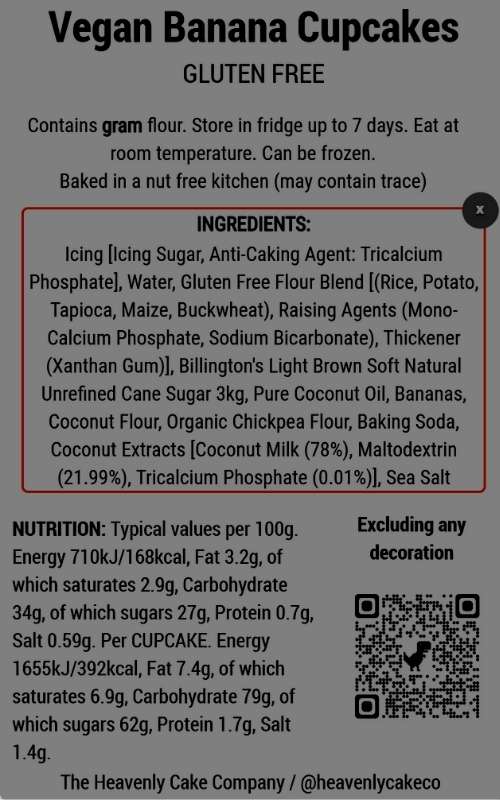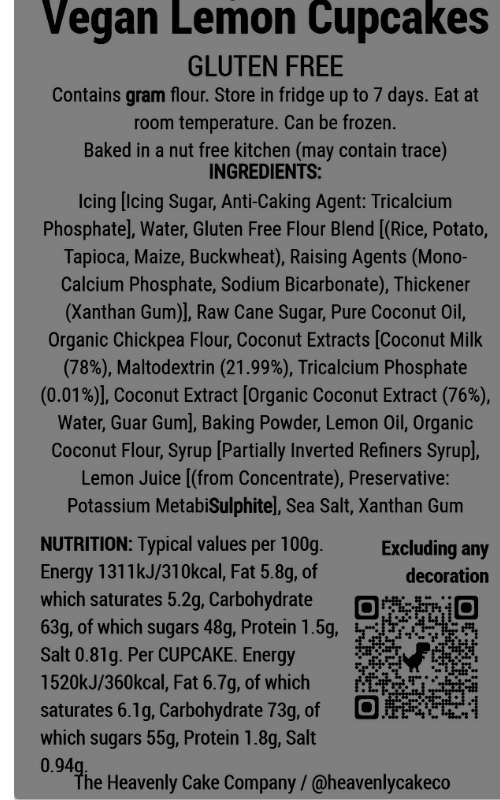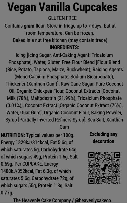 Additionally: Organic cocoa in chocolate cupcakes | Organic lemon oil lemon cupcakes | Organic vanilla essence in vanilla cupcakes.