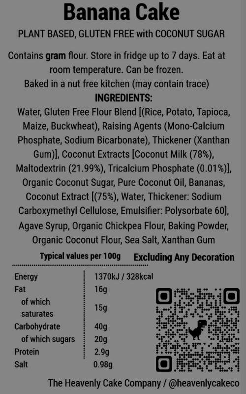 Made with fresh bananas and topped with a handmade unique frosting, our vegan free-from Banana Cake will really get your taste buds zinging. Individually handmade by our artisan bakers, this moist, rich and delicious banana cake is loved by all ages and makes the perfect celebratory cake too.